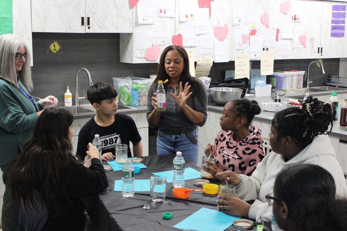 “You don’t give up,” she told them. “It’s better to have something than have nothing.”Brice visited the middle school home economics classroom Feb. 18 for a hands-on cooking demonstration in which she not only helped students make their own teriyaki sauce and see how it would be made into a full meal, but also shared how she became a chef for such names as Jay-Z, Pink and Aerosmith.