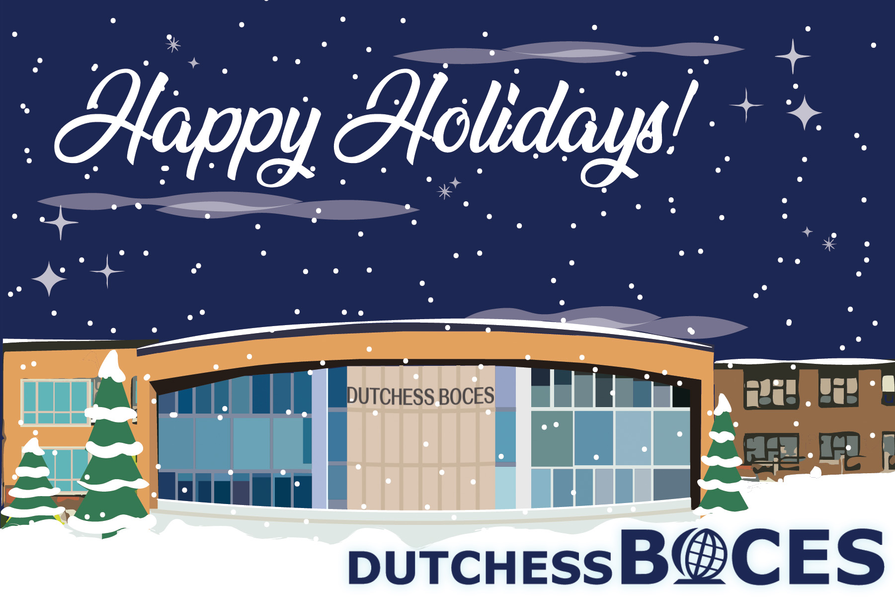 This year, Dutchess BOCES distributed an animated holiday card that featured a drawing of the central building on its 5 Boces Road campus in Poughkeepsie, with snow falling and a jingle playing in ...